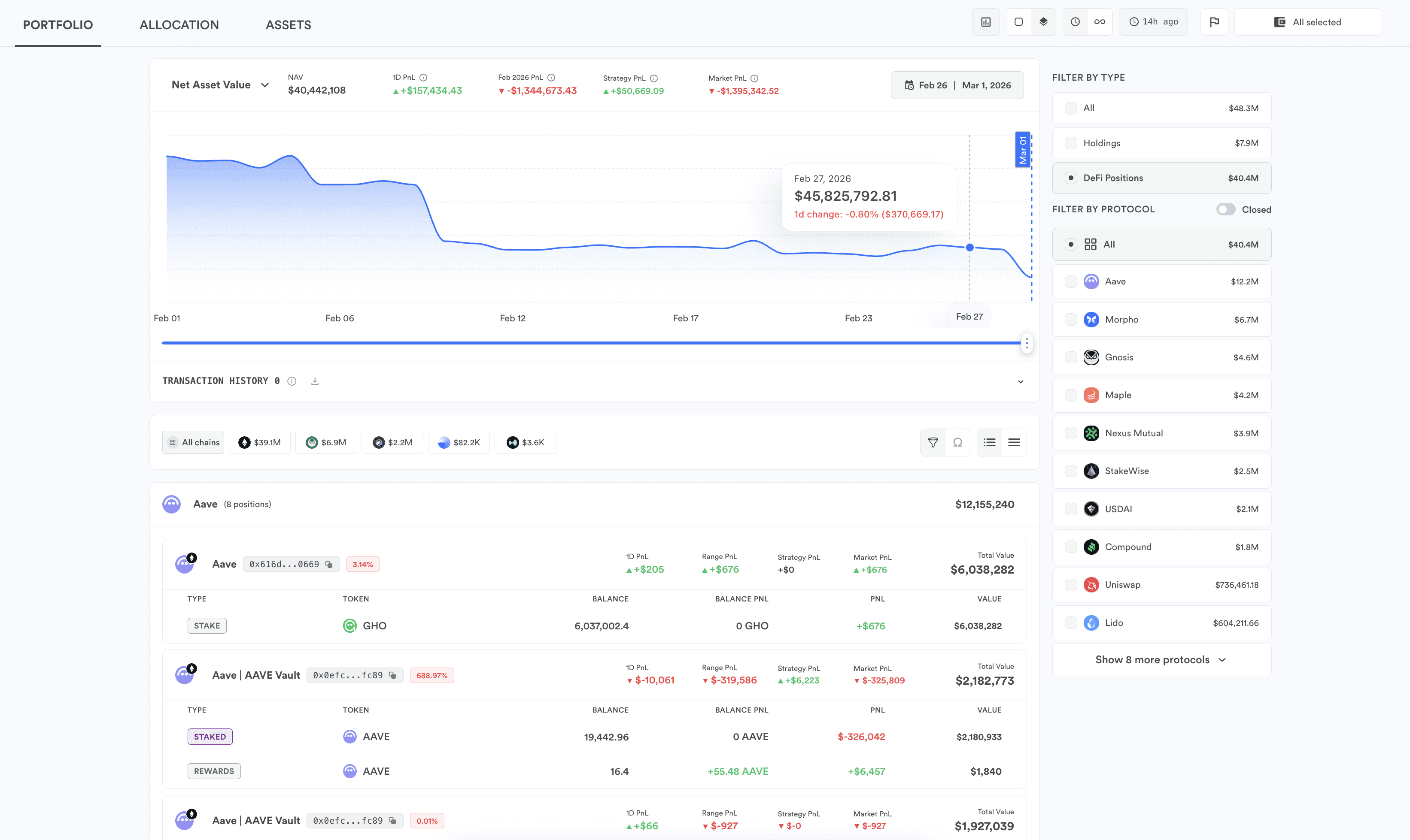 Track strategy performance, exposures, and portfolio-level NAV across wallets.